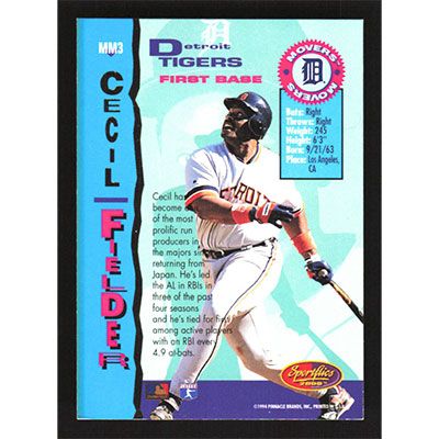 This is a 1994 Sportflics Movers Cecil Fielder baseball card. The card is #MM3 and pictures show condition.