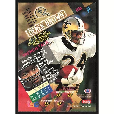 This is a 1994 Stadium Club Derek Brown football card. The card is #192 and pictures show condition.