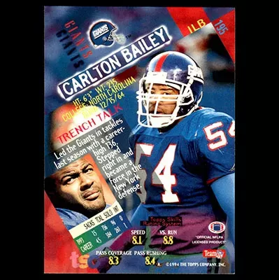 This is a 1994 Stadium Club Carlton Bailey football card. The card is #195 and is in NM-MT condition.