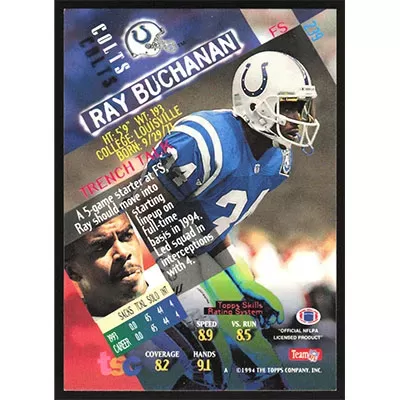 This is a 1994 Stadium Club Ray Buchanan football card. The card is #239 and pictures show condition.