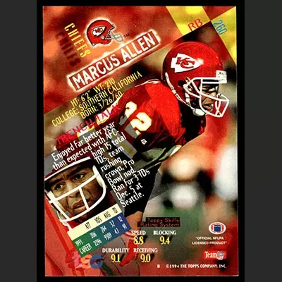 This is a 1994 Stadium Club Marcus Allen football card. The card is #260 and is in NM-MT condition.