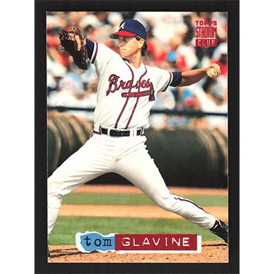 This is a 1994 Stadium Club Tom Glavine baseball card. The card is #574 and pictures show condition.