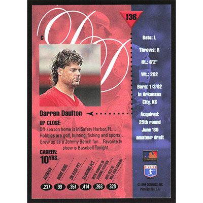This is a 1994 Studio Darren Daulton baseball card. The card is #136 and pictures show condition.