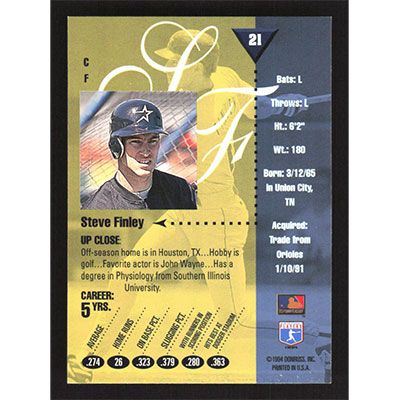 This is a 1994 Studio Steve Finley baseball card. The card is #21 and pictures show condition.