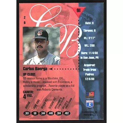 This is a 1994 Studio Carlos Baerga baseball card. The card is #91 and pictures show condition.