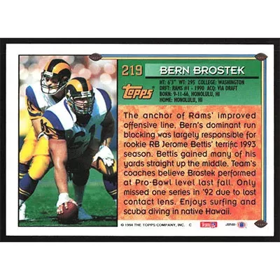 This is a 1994 Topps Bern Brostek football card. The card is #219 and pictures show condition.