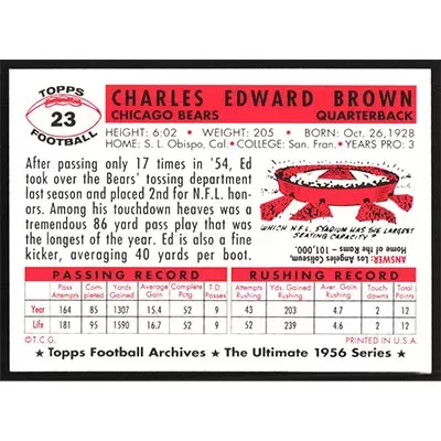 This is a 1994 Topps Archives 1956 Ed Brown football card. The card is #23 and pictures show condition.