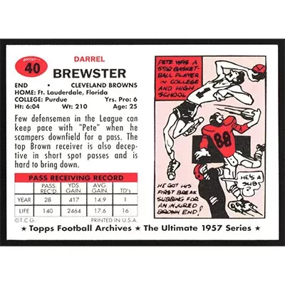 This is a 1994 Topps Archives 1957 Pete Brewster football card. The card is #40 and pictures show condition.