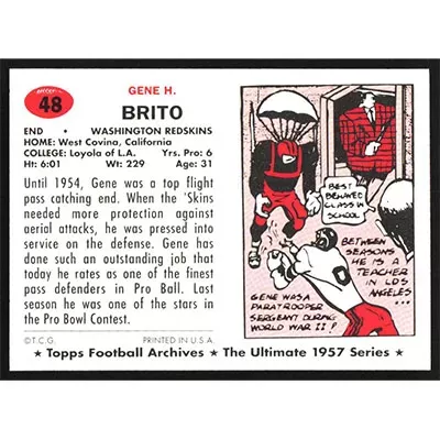 This is a 1994 Topps Archives 1957 Gene Brito football card. The card is #48 and pictures show condition.