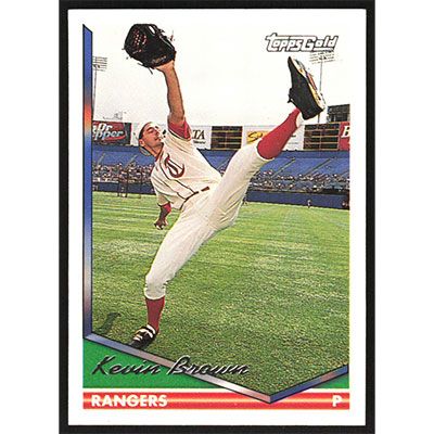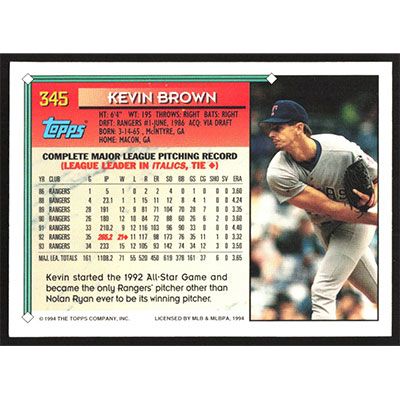 This is a 1994 Topps Gold Kevin Brown baseball card. The card is #345 and pictures show condition.