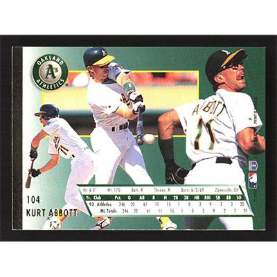 This is a 1994 Ultra Kurt Abbott baseball card. The card is #104 and pictures show condition.