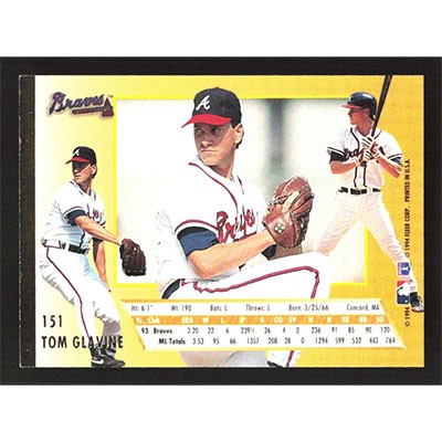 This is a 1994 Ultra Tom Glavine baseball card. The card is #151 and pictures show condition.