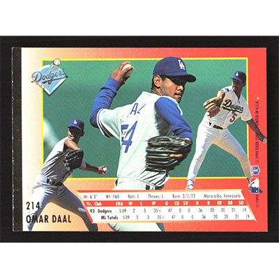 This is a 1994 Ultra Omar Daal baseball card. The card is #214 and pictures show condition.