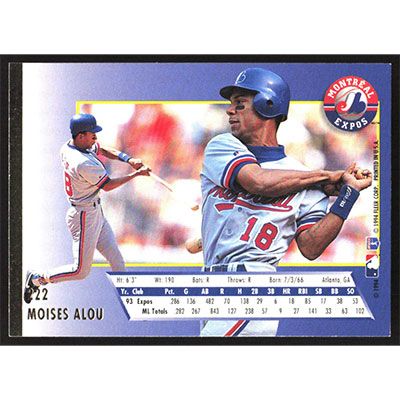 This is a 1994 Ultra Moises Alou baseball card. The card is #222 and pictures show condition.