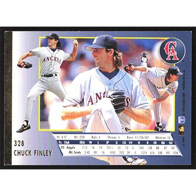 This is a 1994 Ultra Chuck Finley baseball card. The card is #328 and pictures show condition.