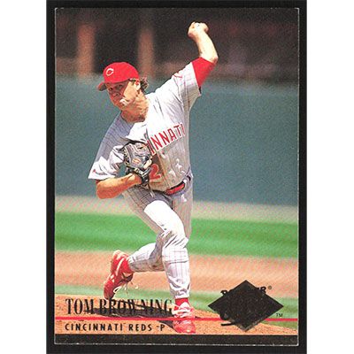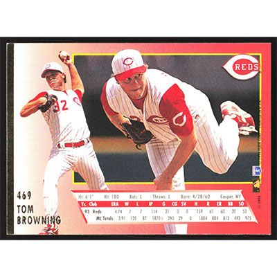 This is a 1994 Ultra Tom Browning baseball card. The card is #469 and pictures show condition.