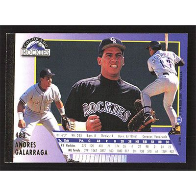 This is a 1994 Ultra Andres Galarraga baseball card. The card is #480 and pictures show condition.