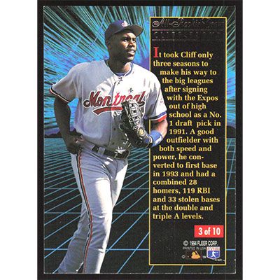 This is a 1994 Ultra All-Rookies Cliff Floyd baseball card. The card is #3 and pictures show condition.