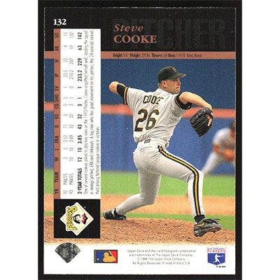 This is a 1994 Upper Deck Steve Cooke baseball card. The card is #132 and pictures show condition.