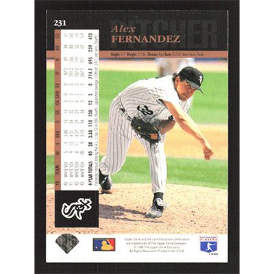 This is a 1994 Upper Deck Alex Fernandez baseball card. The card is #231 and pictures show condition.
