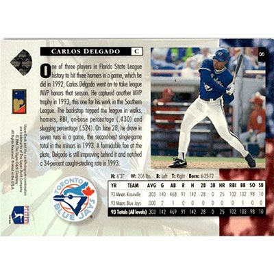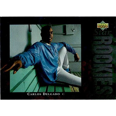This is a 1994 Upper Deck Carlos Delgado Star Rookies baseball card. The card is #8 and pictures show condition.