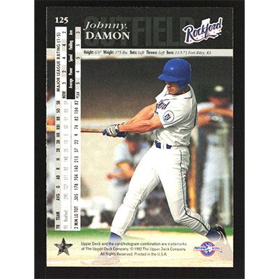 This is a 1994 Upper Deck Minors Johnny Damon baseball card. The card is #125 and pictures show condition.
