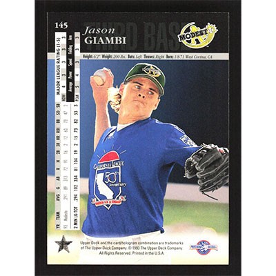 This is a 1994 Upper Deck Minors Jason Giambi baseball card. The card is #145 and pictures show condition.