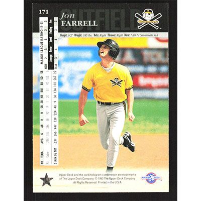 This is a 1994 Upper Deck Minors Jon Farrell baseball card. The card is #171 and pictures show condition.