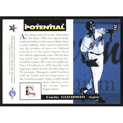 This is a 1994 Upper Deck Minors Curtis Goodwin Star Potential Foil baseball card. The card is #253 and pictures show condition.