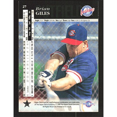 This is a 1994 Upper Deck Minors Brian Giles baseball card. The card is #27 and pictures show condition.