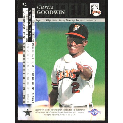 This is a 1994 Upper Deck Minors Curtis Goodwin baseball card. The card is #32 and pictures show condition.