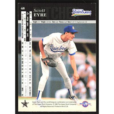 This is a 1994 Upper Deck Minors Scott Eyre baseball card. The card is #48 and pictures show condition.