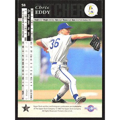 This is a 1994 Upper Deck Minors Chris Eddy baseball card. The card is #58 and pictures show condition.