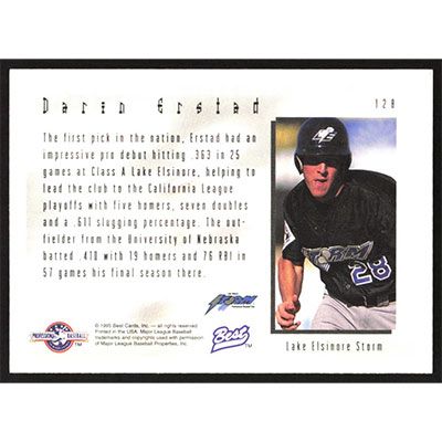 This is a 1995 Best Darin Erstad baseball card. The card is #128 and pictures show condition.