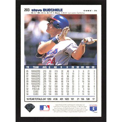 This is a 1995 Collector's Choice Steve Buechele baseball card. The card is #203 and pictures show condition.