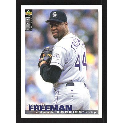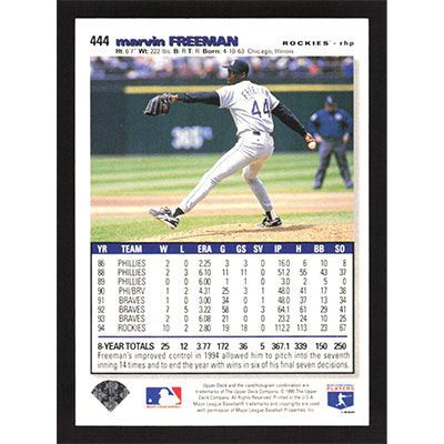 This is a 1995 Collector's Choice Marvin Freeman baseball card. The card is #444 and pictures show condition.