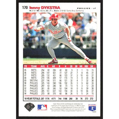 This is a 1995 Collector's Choice SE Lenny Dykstra baseball card. The card is #170 and pictures show condition.