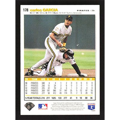 This is a 1995 Collector's Choice SE Carlos Garcia baseball card. The card is #178 and pictures show condition.