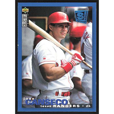 This is a 1995 Collector's Choice SE Jose Canseco baseball card. The card is #185 and pictures show condition.