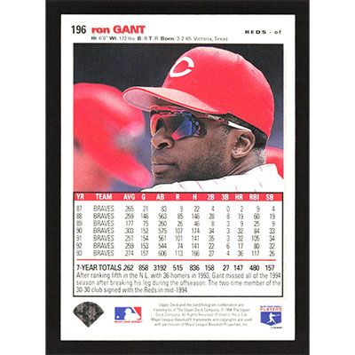 This is a 1995 Collector's Choice SE Ron Gant baseball card. The card is #196 and pictures show condition.