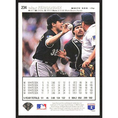 This is a 1995 Collector's Choice SE Alex Fernandez baseball card. The card is #234 and pictures show condition.
