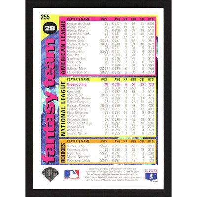 This is a 1995 Collector's Choice SE Craig Biggio Fantasy Team baseball card. The card is #255 and pictures show condition.