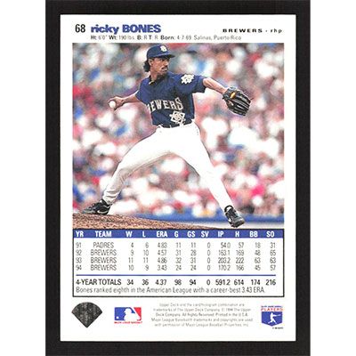 This is a 1995 Collector's Choice SE Ricky Bones baseball card. The card is #68 and pictures show condition.