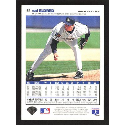 This is a 1995 Collector's Choice SE Cal Eldred baseball card. The card is #69 and pictures show condition.