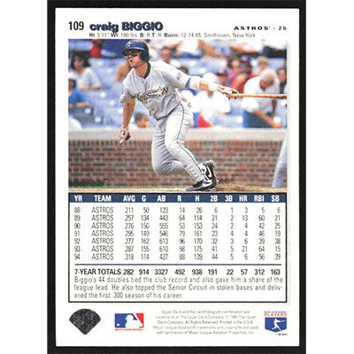 This is a 1995 Collector's Choice Silver Signature Craig Biggio baseball card. The card is #109 and pictures show condition.