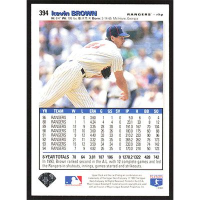 This is a 1995 Collector's Choice Silver Signature Kevin Brown baseball card. The card is #394 and pictures show condition.