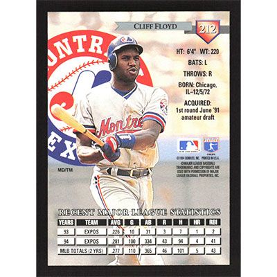 This is a 1995 Donruss Cliff Floyd baseball card. The card is #212 and pictures show condition.