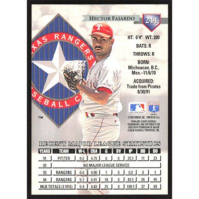 This is a 1995 Donruss Hector Fajardo baseball card. The card is #244 and pictures show condition.