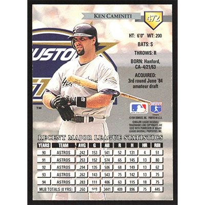 This is a 1995 Donruss Ken Caminiti baseball card. The card is #472 and pictures show condition.