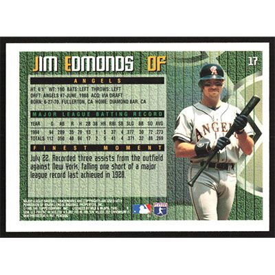 This is a 1995 Finest Jim Edmonds baseball card. The card is #17 and pictures show condition.